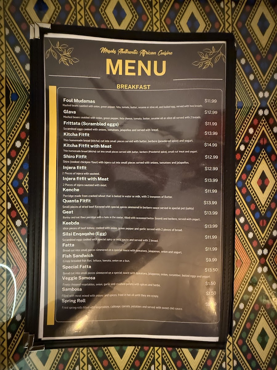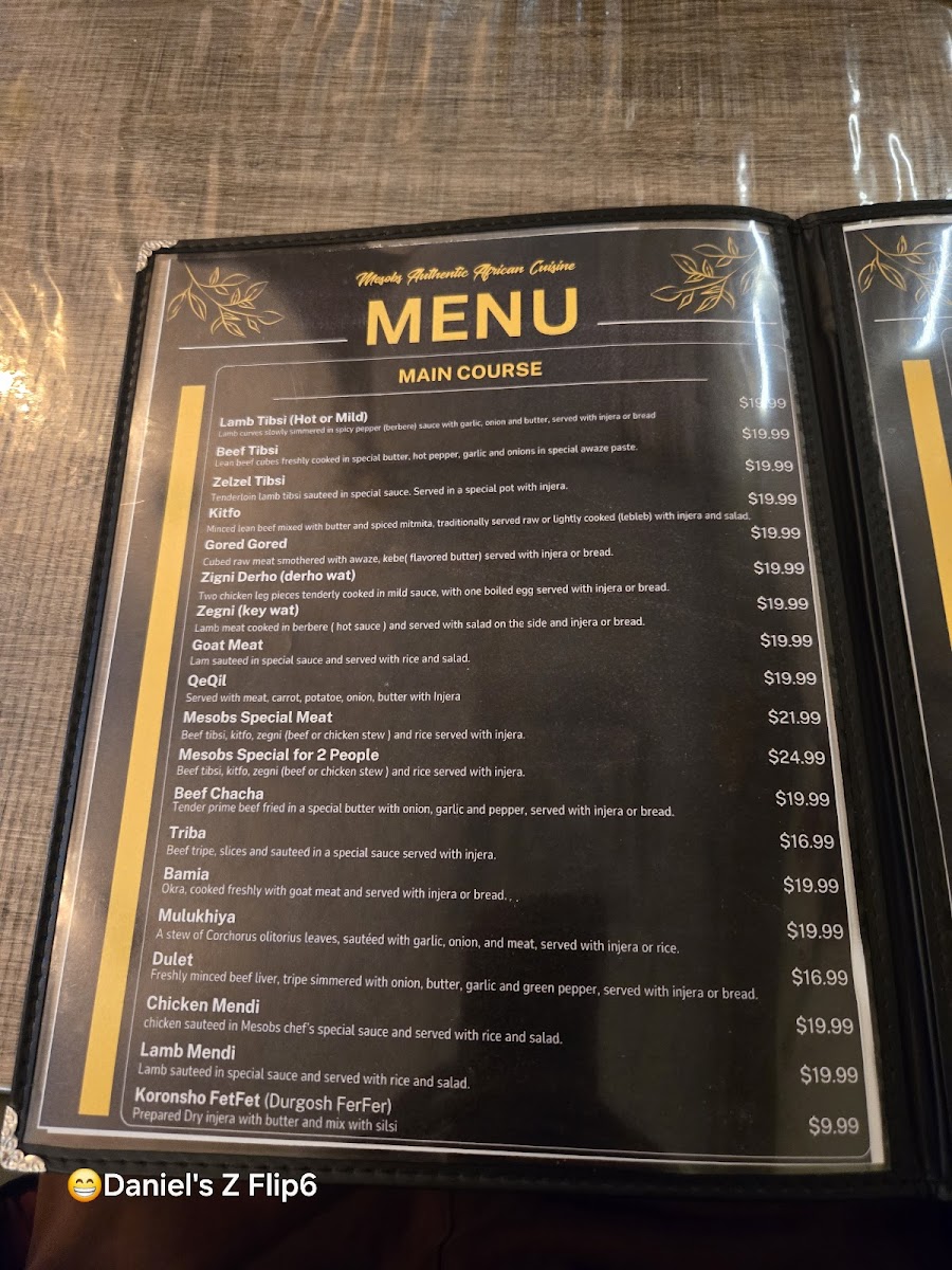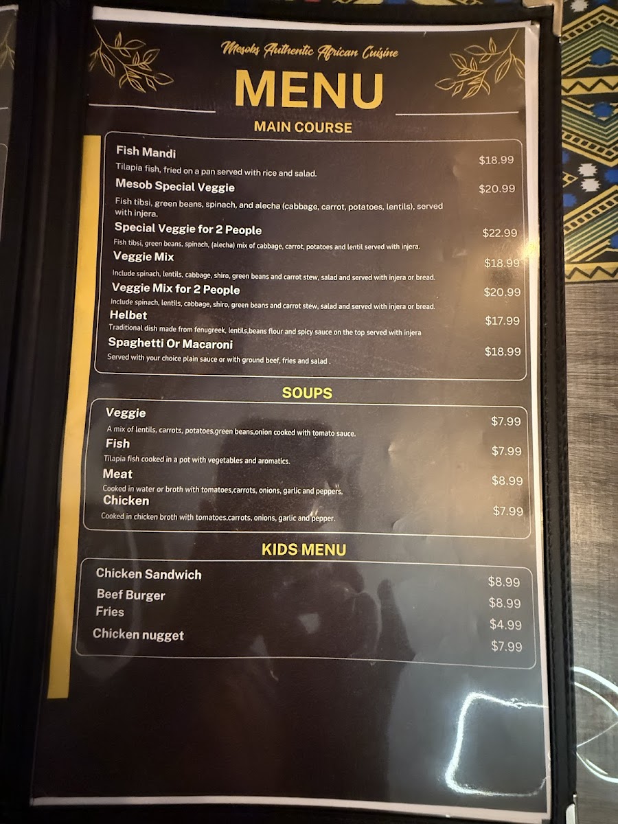 Mesobs Restaurant Menu
